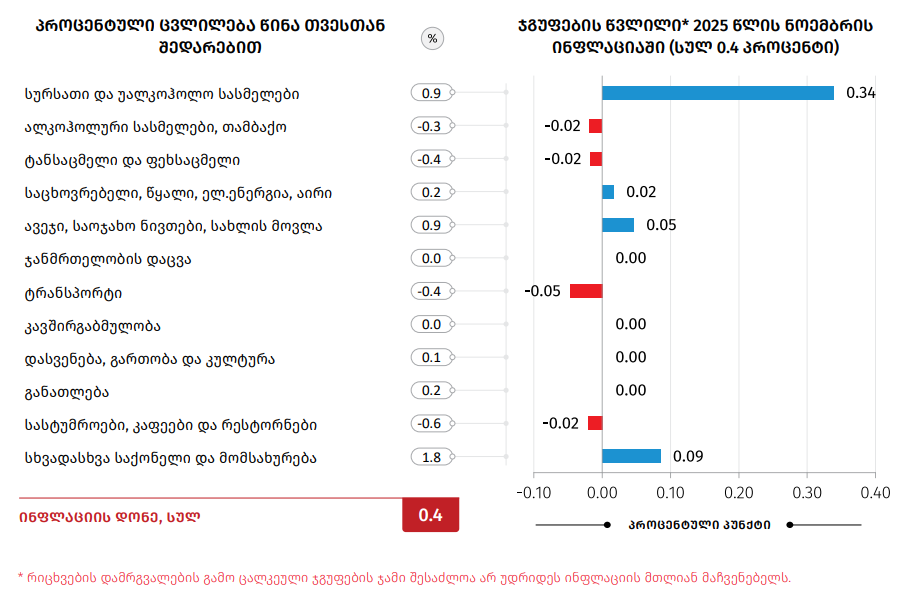 ქვემოთ მოცემულ გრაფიკზე აღნიშნულია ინფლაციის მაჩვენებელი 2025 წლის ოქტომბერთან შედარებით: